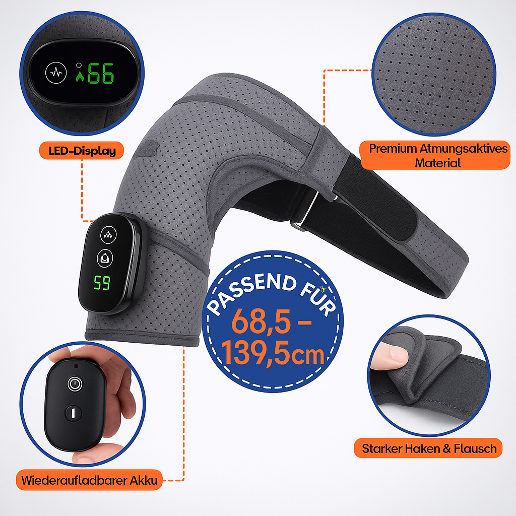 Mit seiner ergonomischen Passform und den individuell einstellbaren Temperatur- und Vibrationsmodi lässt sich die Behandlung exakt an deine Bedürfnisse anpassen – ganz ohne Einschränkungen in der Bewegungsfreiheit.